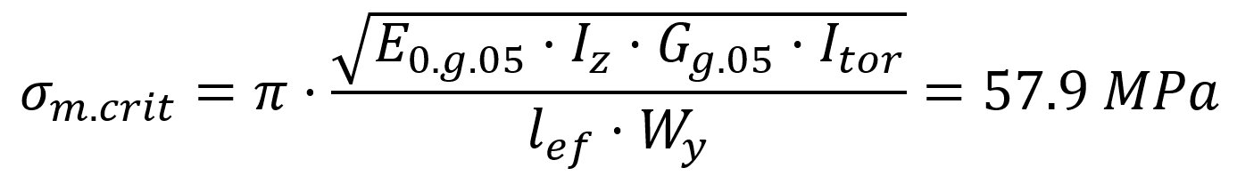 Step #3: Calculate the loads and internal forces acting in the timber elementFirst, we need to calculate the characteristic loads that act on the roof area of the canopy. The area loads are applied to the roof panels (could be OSB boards or trapezoidal steel sheeting). These panels then transfer the loads to the secondary beams which we verify in this tutorial. This video explains transfering vertical loads in detail (click → here ←). We won't show how to calculate the loads and how to do the load transfer in this newsletter, as each calculation of the individual load is an article for itself. But that's exactly what I teach in Module #2: Structural Design of a Residential Timber Roof. In this email, we'll design the secondary timber beam for the following design line load. Design line load: pd = 4.0 kN/m From design load, we'll calculate the design bending moment: Md = pd ⋅ s2/8 = 12.5 kNm And the design shear force: Vd = pd ⋅ s/2 = 10 kN Step #4: Verify the timber beam for bendingCharacteristic bending resistance (see step #1): fm.g.k = 24 MPa Design bending resistance: fm.g.d = kmod ⋅ fm.g.k/γM = 17.3 MPa Design bending stress: σm.d = Md/Iy ⋅ h/12 = 10.8 MPa Verification according to EN 1995-1-1 (6.11): η = σm.d/fm.g.d = 62.8% Step #5: Verify the timber beam for shearAccording to EN 1995-1-1 (6.13) shear is verified as: τd ≤ fv.d Characteristic shear resistance (see step #1): fv.k = 4.0 MPa Design shear resistance: fv.d = kmod ⋅ fv.k/γM = 2.88 MPa The shear design shear stress is calculated as: τd = 3/2 ⋅ Vd/A = 0.52 MPa Verification according to EN 1995-1-1 (6.13): η = τd /fv.d = 18% Step #6: Verify the timber beam for lateral torsional bucklingFirst, we'll calculate the effective length of the beam according to EN 1995-1-1 Table 6.1: lef = 0.9 ⋅ s + 2 ⋅ h = 4.98m Critical bending stress (EN 1995-1-1 (6.31)): Relative slenderness (EN1995-1-1 (6.30)): λrel.m = √(fm.k/σm.crit) = 0.64 Factor for reduced bending strength due to lateral torsional buckling (EN1995-1-1 (6.34)): λrel.m > 0.75 → kcrit = 1.0 Utilization (EN1995-1-1 (6.35)): η = (σm.d/(kcrit ⋅ fm.d))2 = 0.39 Step #7: Verify the timber beam for deflectionIn the deflection analysis we check that the instantaneous winst and final deflections wfin of the beams/rafters are less than limits we find either in Eurocode, the National Annex or values given by the client. EN 1995-1-1 Table 7.2 recommends values for winst, wnet.fin and wfin which should not be exceeded for a simply supported beam. This leads to the following limits. Instanteneous deflectionwinst = l/300 = 16.7mm Final deflectionwfin = l/150 = 33.3mm  Verification of the instantaneous deflectionThe instantaneous deflection is calculated with loads from the characteristic SLS load combination. In our case we only defined a design load in step #3. But let's assume that we have two characteristic loads that act on the beam - the dead load and the snow load. Let's say the dead load = 2 kN/m and the snow load = 0.85 kN/m. uinst = ug.k + us.k The deflection of a simply supported beam due to a line load is calculated as: wmax = 5/384 ⋅ ql4/(E0.mean ⋅ Iy) You can find many more deflection formulas here. Deflection of the characteristic dead load: ug.k = 5/384 ⋅ gk ⋅ l4/(E0.mean ⋅ Iy) = 10.7 mm Deflection of the characteristic snow load: us.k = 5/384 ⋅ sk ⋅ l4/(E0.mean ⋅ Iy) = 4.5 mm SLS load combination: uinst = ug.k + us.k = 15.3 mm Verification according to EN 1995-1-1: η = uinst/winst = 91.5% Verification of the final deflectionThe final deflection is calculated with loads from the characteristic SLS load combination and a long-term component which is found from EN 1995-1-1 2.2.3 (5). ufin = ug.k ⋅ (1 + kdef) + us.k ⋅ (1 + kdef ⋅ ψ2) With